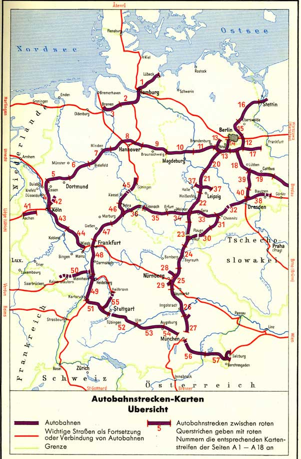 Autobahnnetz in Deutschland ca. 1950